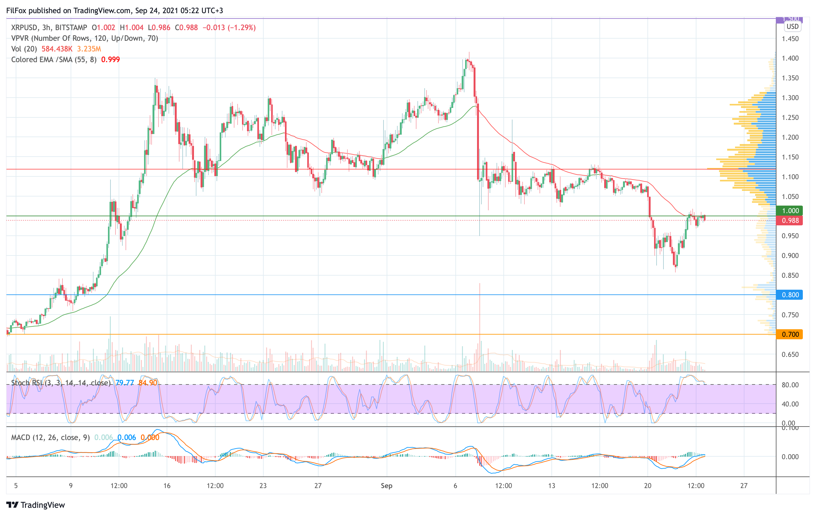 Вместе с тем, если весь крипто-рынок продолжит восстановление, то и цена XRP сможет закрепиться выше зелёной отметки один доллар за монету.