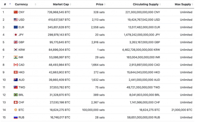 Биткоин заслуженно занял 14-е место, обогнав российский рубль. Капитализацию российской валюты оценили в 16,746 млн BTC, а биткоин, при общем лимите в 21 млн монет, имеет в обращении 18 624 837 BTC.